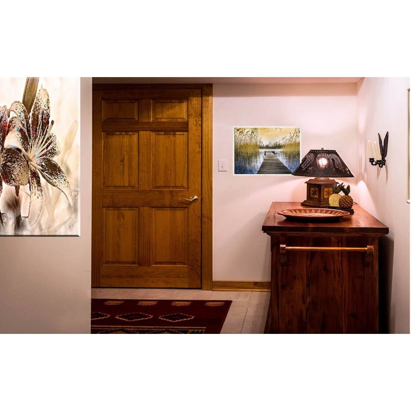 La imagen va en lienzo impreso sobre tabla DM de 1 cm envolviendo los cantos , el interior o fondo  serian 4cm, al lienzo le damos  con barniz  transparente  estrultural  (efecto pintura).