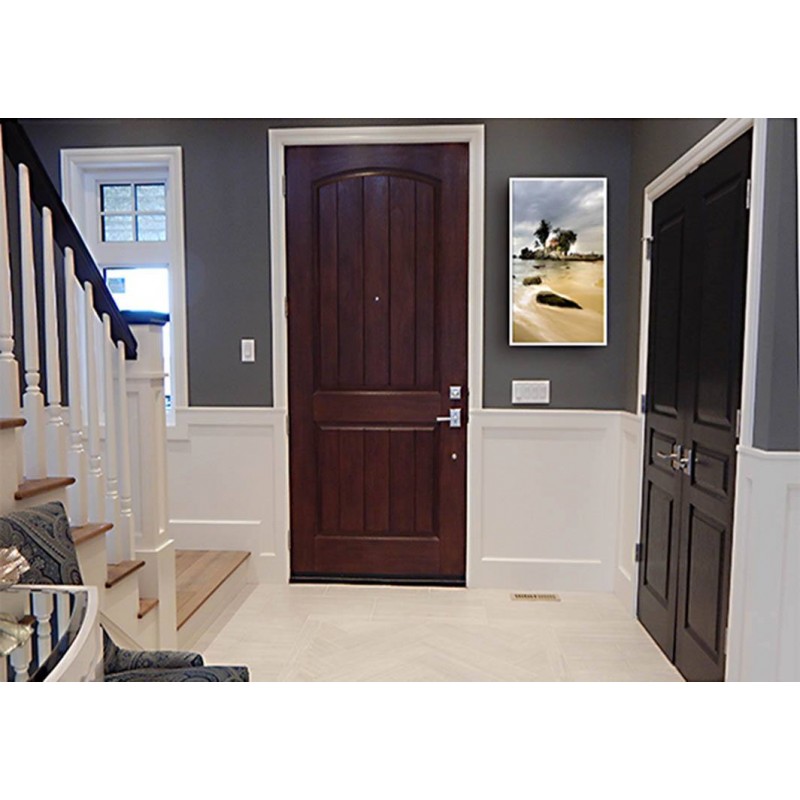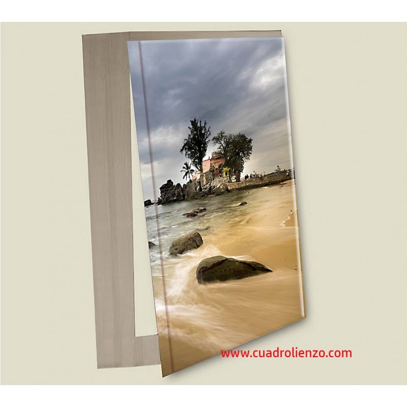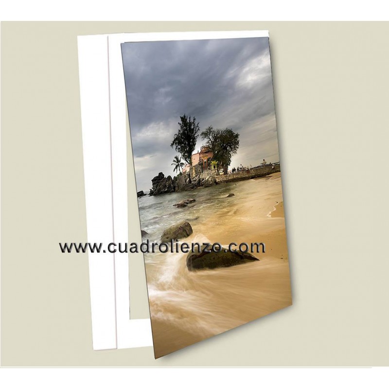 La imagen va en lienzo impreso sobre tabla DM de 1 cm envolviendo los cantos , el interior o fondo  serian 4cm, al lienzo le damos  con barniz  transparente  estrultural  (efecto pintura).