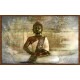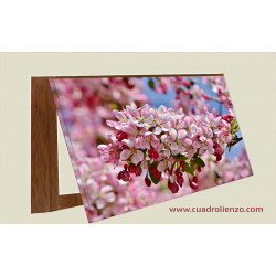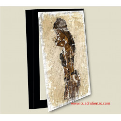 La imagen va en lienzo impreso sobre tabla DM de 1 cm envolviendo los cantos , el interior o fondo  serian 4cm, al lienzo le damos  con barniz  transparente  estrultural  (efecto pintura).